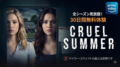 海外ドラマ「クルーエル・サマー(Cruel Summer)」をどこで見れるか調べている方に結論からお伝えします。本作はAmazon Prime Videoで全シーズン見放題配信中です。プライム会員なら追加料金なしでシーズン1・シーズン2の全20話を字幕版・吹替版どちらでも楽しめます。しかも初めての方は30日間の無料体験が利用でき、期間中に解約すれば料金は一切かかりません。
