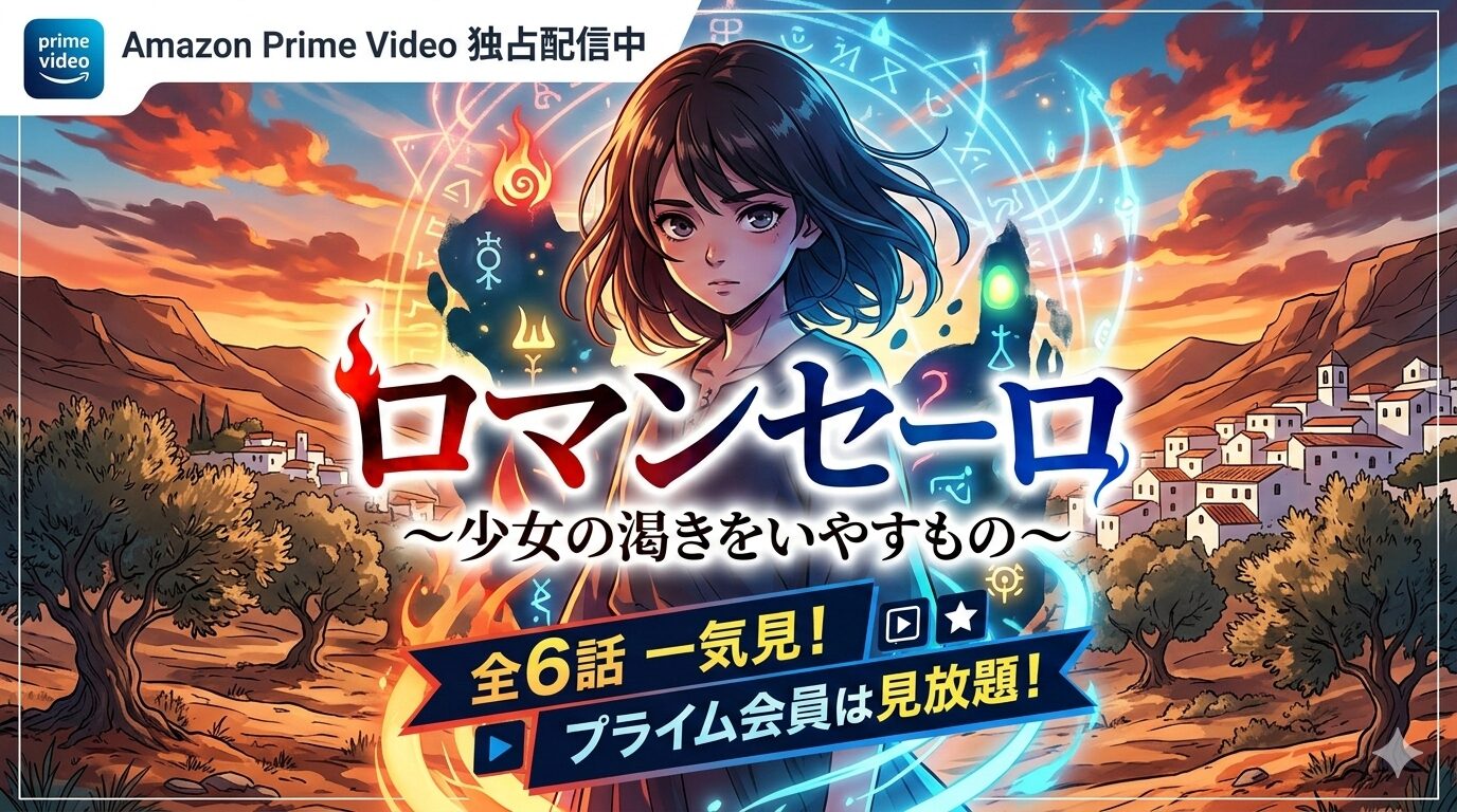 「ロマンセーロ ~少女の渇きをいやすもの~」はAmazonプライムビデオで独占配信中です。プライム会員なら追加料金なしで全6話を一気見できます。他の動画配信サービスでは視聴できないAmazonオリジナル作品です。
